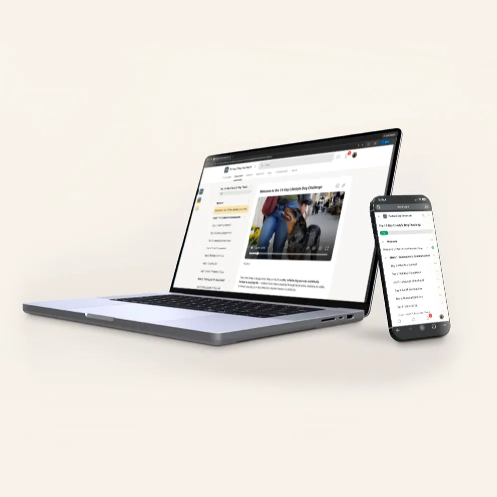The challenge takes place inside the Good Dog Community — a private learning space for dog owners working toward the same goal: a well mannered companion dog you can take anywhere.